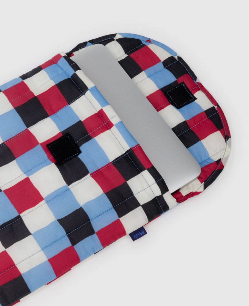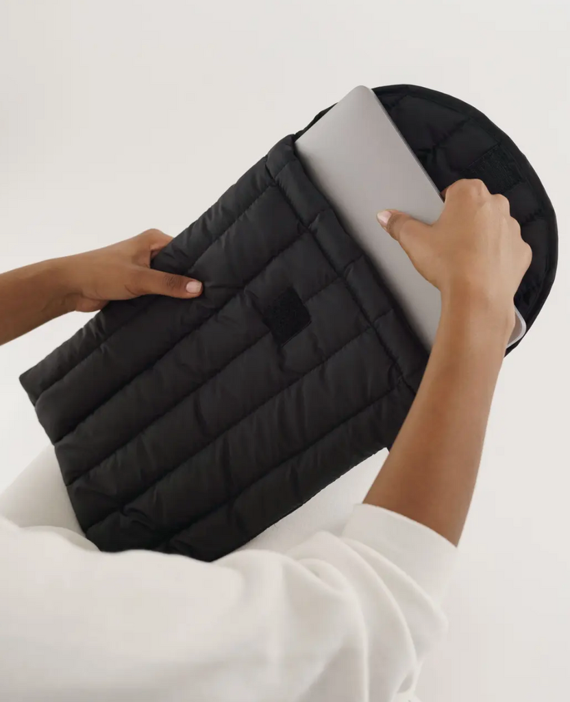 Your laptop does so much for you. Doesn’t it deserve a comfy cozy place to live? Our puffy laptop sleeve is quilted and stuffed to provide your 16" laptop or tablet with just enough padding for comfortable rides.