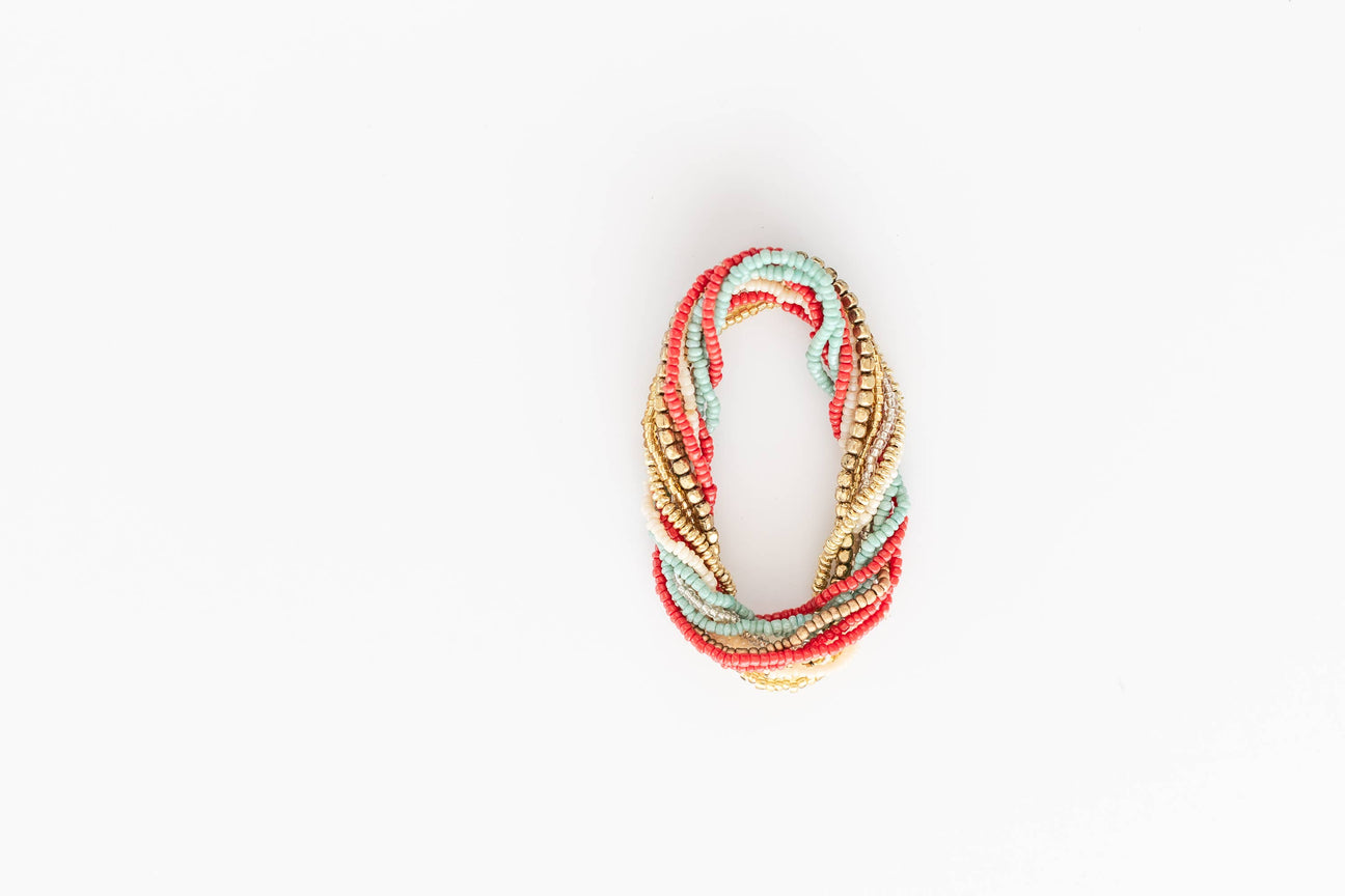Beaded Bracelet Set: Turquoise/Red/Gold