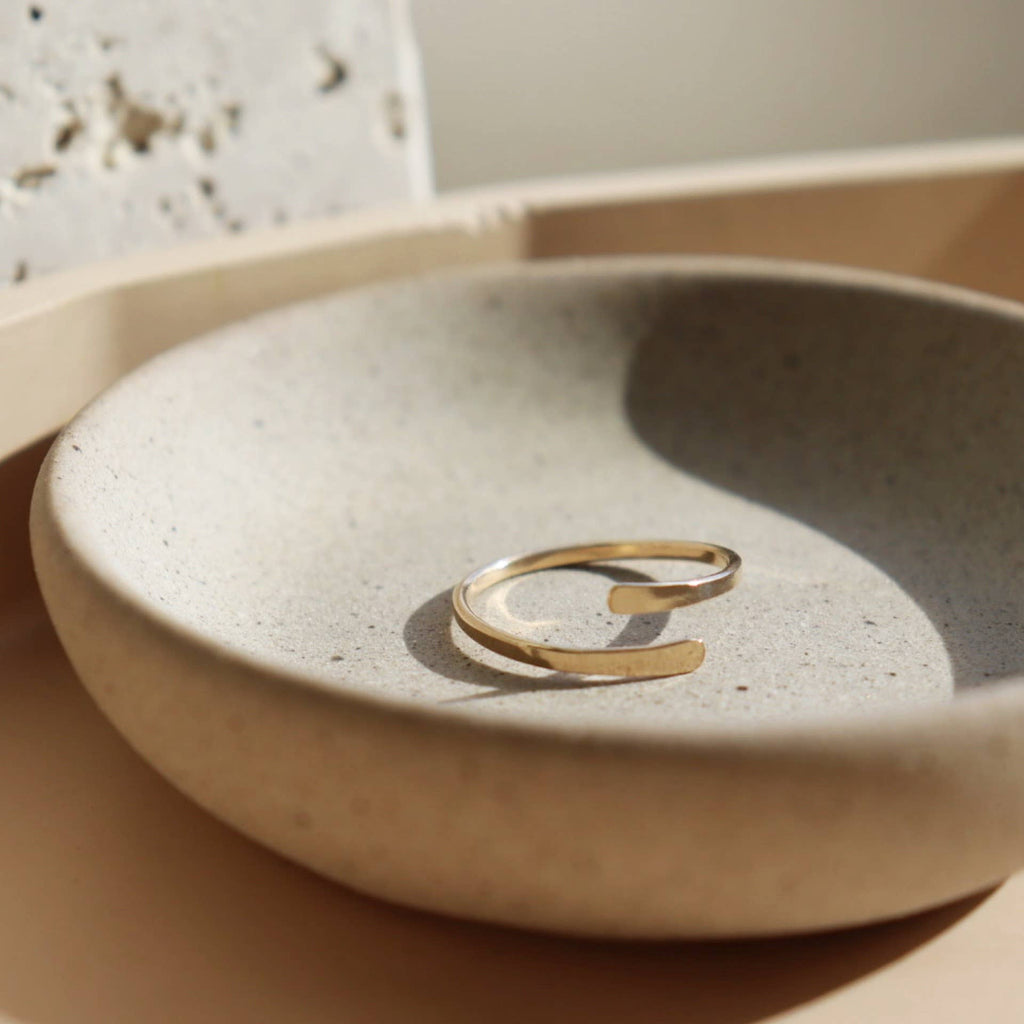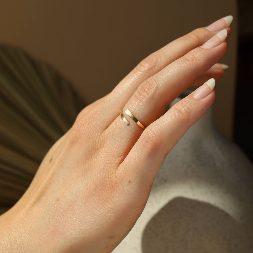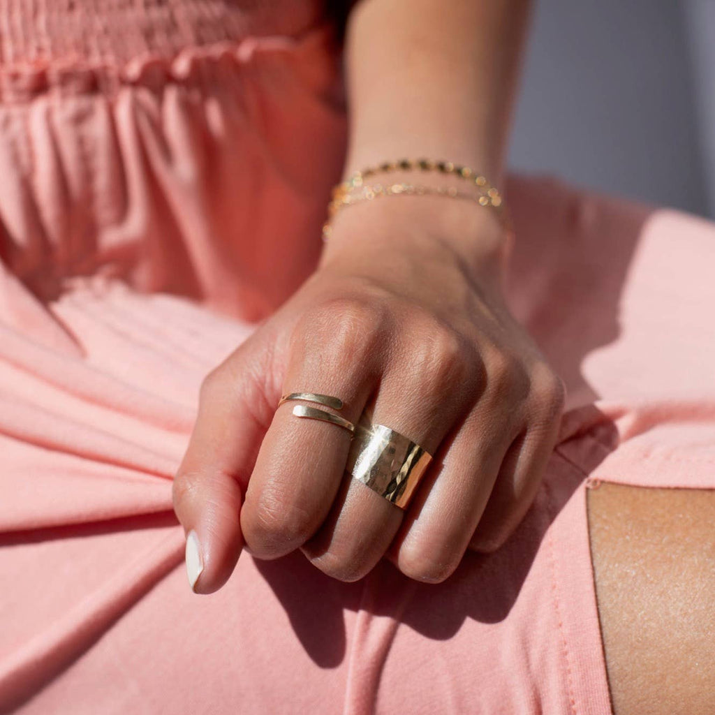 A pretty coiled design and lightly hammered texture make this ring a must-have for your ring collection. We love how this ring layers with our open rings - making them the perfect pair for your everyday look. DETAILS Made in sizes and 5-9 Offered in sterling silver or 14k gold fill Hypoallergenic, Nickel-Free and Water Safe Token Jewelry's minimal and modern jewelry line includes earrings, necklaces, bracelets and rings-each handmade to order at our woman owned and led studio in Eau Claire, WI. Each piece is created using 14k gold fill and sterling silver, as well as thoughtfully sourced gemstones.