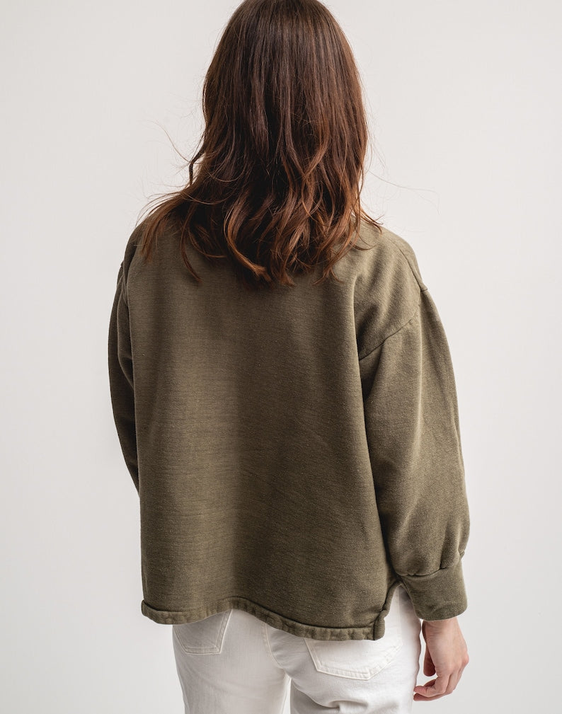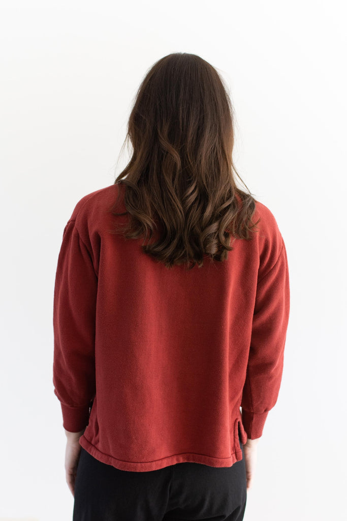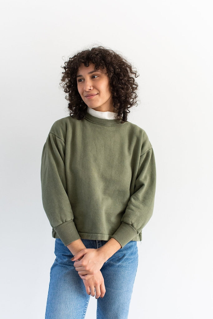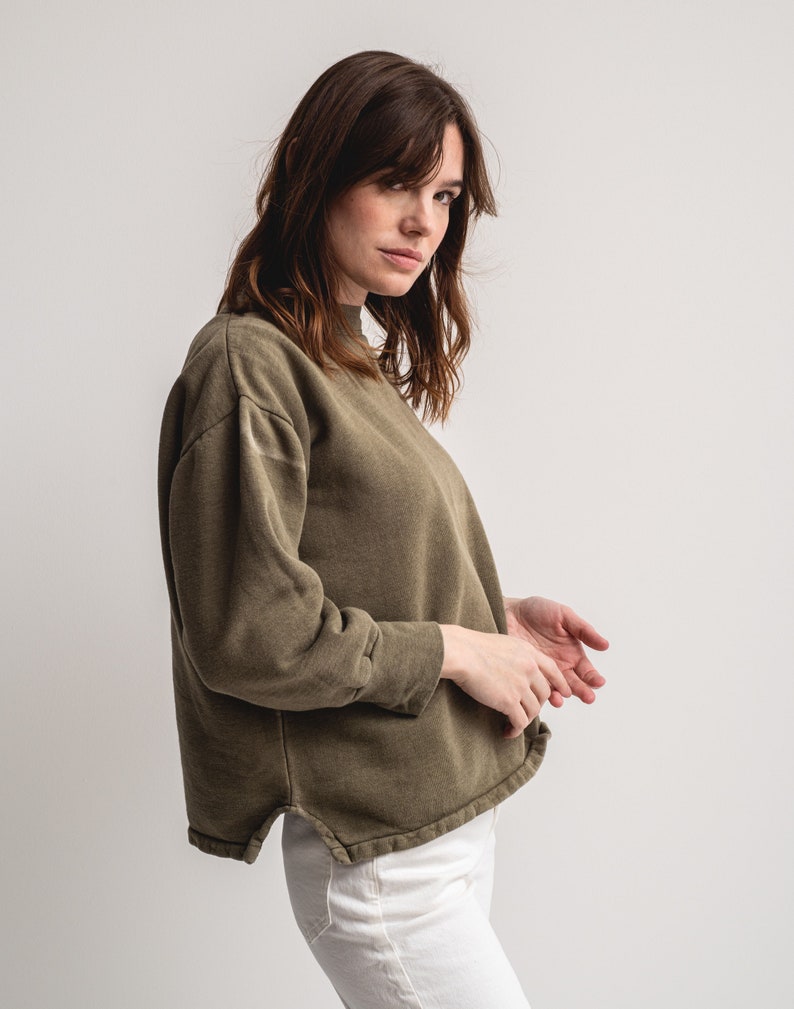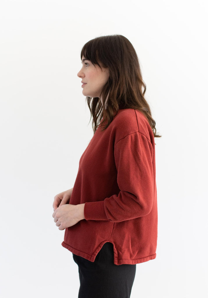Soft cotton vintage sweatshirt with a crew neck, Fore-arm length sleeves, side slits. Thicker weight with coziest fleece interior.