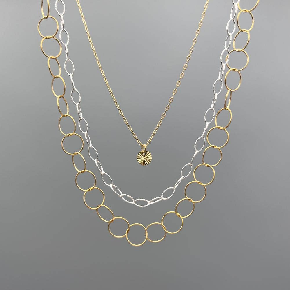 Mini Sunbeam Disc Necklace .925 Sterling Silver, 7mm Pendant / 16-18 inches