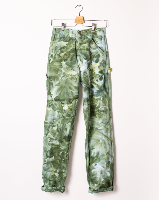 Deadstock vintage Stan Ray work pants hand dyed with low impact dyes. Durable cotton twill in a vintage fit; high waisted, slim throughout the hips and straight in the leg with carpenter pockets. Complete with a zip fly + button waist closure. Those wanting a more slouchy fit should size up. All sizes are actual waist measurements.