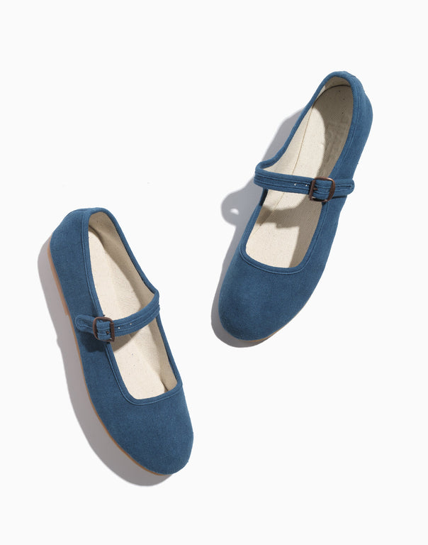The return of the classic Mary Jane is back and just in time for summer! Small Lot's Classic Mary Jane features premium up-cycled and organic cotton canvas, plant based dye and a natural rubber sole. Details include a small stitched heel and adjustable antique brass buckle.