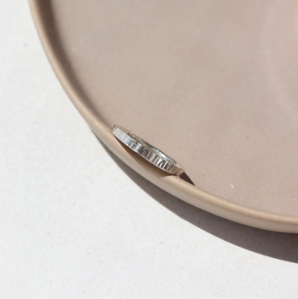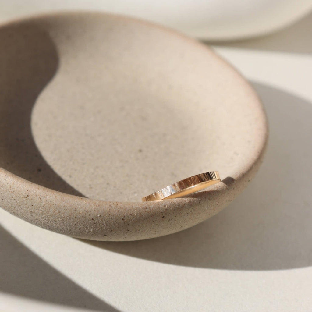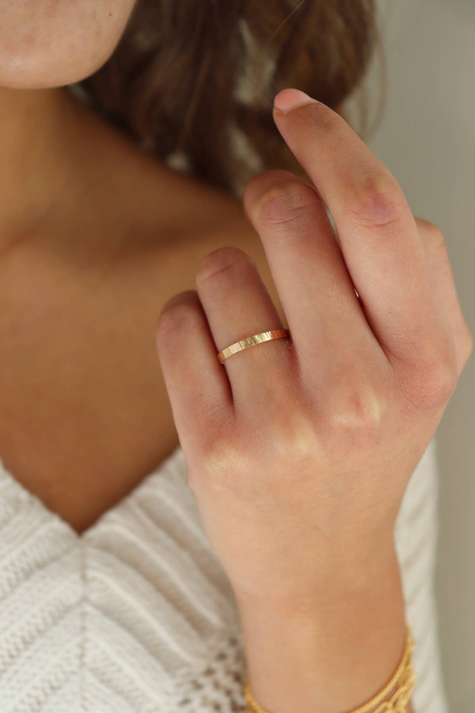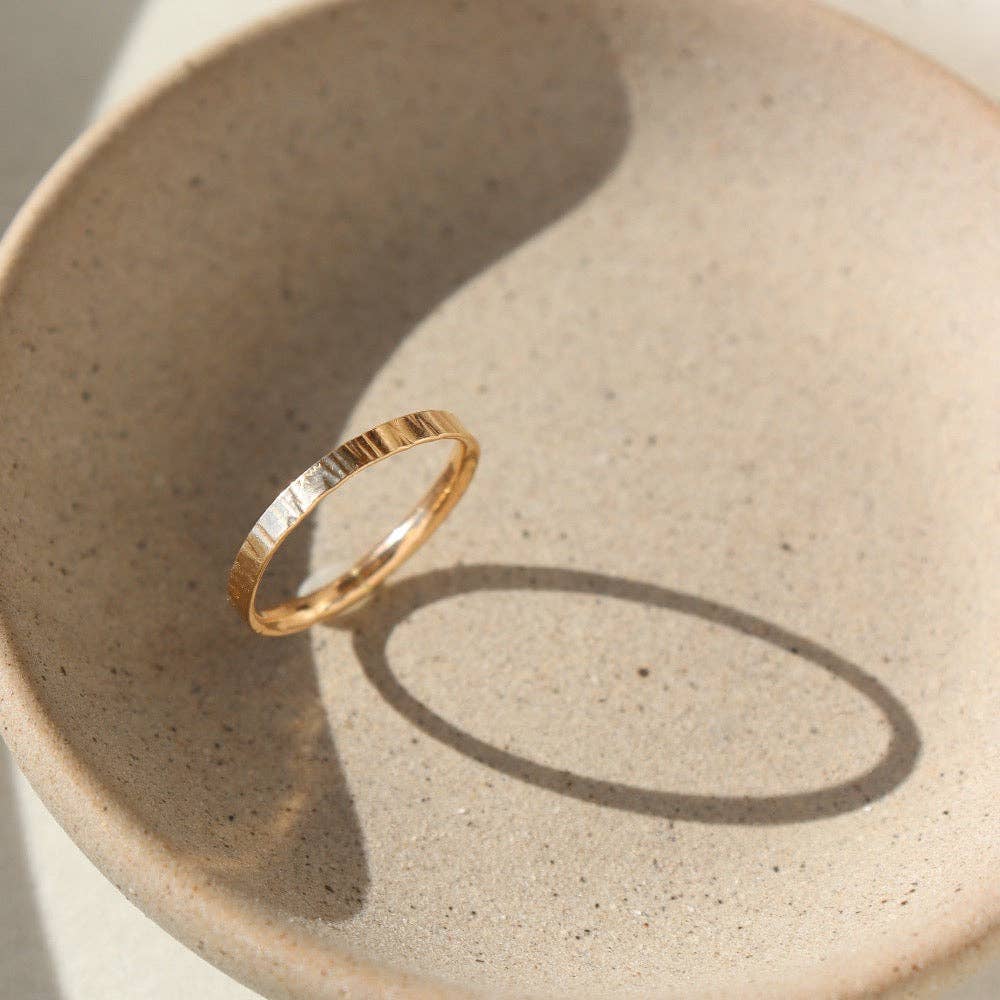 Our new favorite ring with a linear hammered texture. Maeve is gorgeous worn alone or compliments well with any of our Stacking Rings or Gemstone Rings.