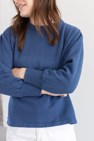 Soft cotton vintage sweatshirt with a crew neck, Fore-arm length sleeves, side slits. Thicker weight with coziest fleece interior.