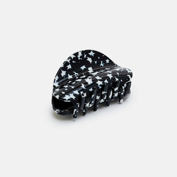 This small-ish-sized hair claw is recommended for all hair types and textures. Perfect for fine hair buns and thicker hair half-updo's! Made from high quality acetate; a durable, plant based bio-plastic. Metal hardware is lead and nickel-free. Slight variations will appear with pattern, color and form due to the handmade nature of the product. Measures approx 2.75"L x 1.5"H x 1.5"D