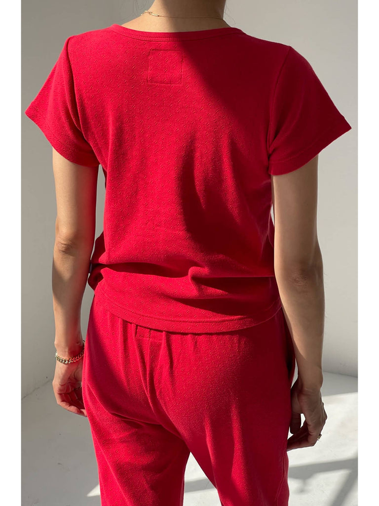 A dreamy take on the everyday tee. The Pointelle Babe Tee is made from the same ultra-soft cotton pointelle jersey as the Eve Cami—breathable and just the right weight for an ideal drape. With a timeless crew neckline, classic short sleeves, and a subtly cropped length, it fits like our beloved Little Boy Tee. Feminine yet effortless, it's a versatile staple designed to move with you through every season.