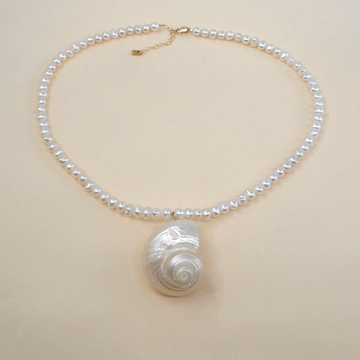Material: Freshwater pearls & Pearlized Shell Charm Length: 15" chain with 1" extender *Size and shape of pearl may vary Made by hand in Southern California