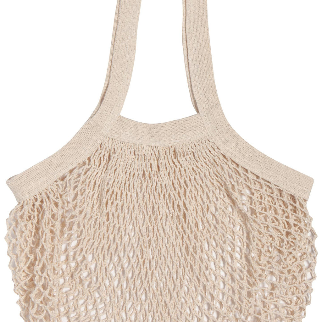 Enjoy a stylish solution for carrying your groceries, fruits, and vegetables with this chic, eco-friendly. Inspired by the durability of the humble fishing net, the idea of these lightweight mesh shopping bags has its origin in the villages of Normandy, France. Their open weave design allows for some stretch, and it enables them to fold down into a compact size for storage. Incredibly versatile, several bags can neatly fit into a backpack or tote, making them ideal for larger shopping trips as well as quick visits to the local markets. Made from pure cotton, these stylish bags possess the strength and flexibility to safely carry heavier, irregularly shaped items. • Size: w12 x l26in. • material content: 100% cotton. • care instructions: machine wash cold, line dry.